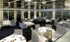 整個天花都用具有很強的反光效果的銀鏡裝飾挑高的吊頂空間,利用茶鏡的虛擬成像,擴大整個餐廳的視覺空間,背景墻也用銀鏡裝飾,給整個散客區(qū)營造開闊自在的舒適感。以時尚的現(xiàn)代線條裝飾天花,產(chǎn)生一種扭曲的動感效果,一種打破束縛的舒適自由,搭配銀鏡的高貴大方質(zhì)感,創(chuàng)造出一個高貴的舒適進餐環(huán)境。
